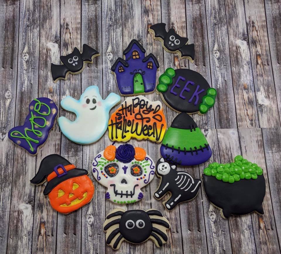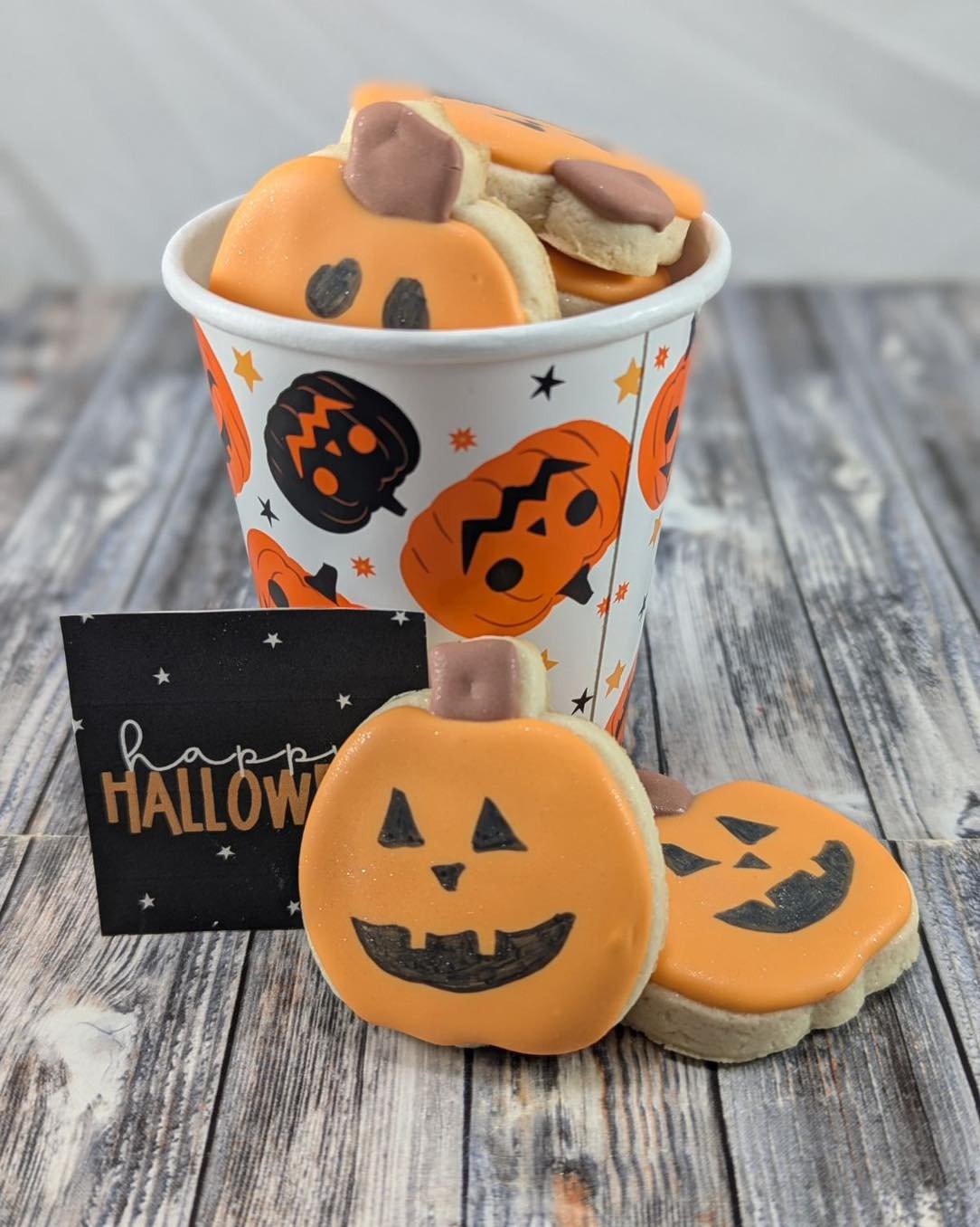 Halloween Pre-Order Halloween Cookie Platter $45.00 Halloween Mixed Dozen $30.00 Monster/Candy Corn Set $10.00 Ghost Set $10.00 Jack-o-lantern Set $10.00 Sugar Skull Set $10.00 Boo Set $10.00 Paint your Own Jack-o-lantern $6.00 Happy Halloween Pumpkin Cup $8.00